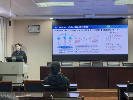 最后,m88官网组织开展了榜样示范分享会。23级研究生孙露同学作为主讲人,围绕个人成长历程与国奖申报经验展开分享,条理清晰地讲述了自己在科研学习中明确目标、高效规划、攻坚克难的心得,为在场同学传递了实用且可借鉴的成长思路。