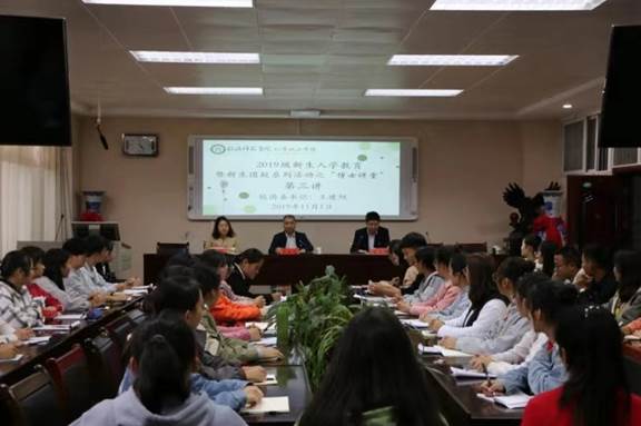 11月1日,m88官网新生入学教育暨新生团校系列活动之“博士讲堂”第三讲在化学实验楼407会议室开讲,校团委书记王建旭以“认真学习团章,争做合格共青团员”为题,为m88官网2019级部分新生作了一场语言生动、内容丰富的报告,报告由m88官网党委副书记吴志伟主持。