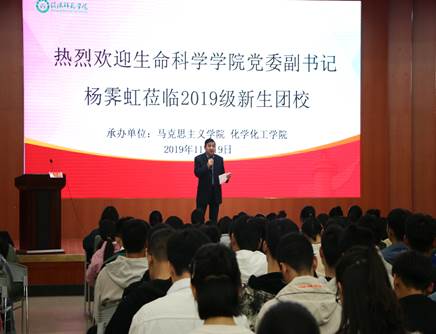 根据我校共青团组织建设发展的需要,结合学校的培养目标,分阶段、分层次的向青年员工开展团的基本知识和基本理论的教育。11月19日,m88官网2019级新生团校课第一讲在逸夫楼报告厅成功举行。生命科学m88官网党委副书记杨霁虹为m88官网及马克思主义m88官网2019级新生上团课,由m88官网团委书记邓耀辉主持。