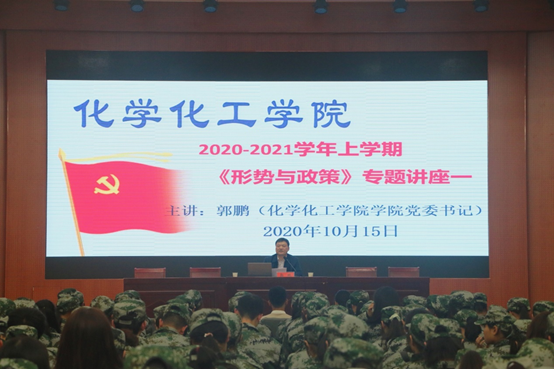 10月15日,m88官网党委书记郭鹏在逸夫楼报告厅为青年员工开讲2020-2021学年上学期《形势与政策》课,2020级新生全体员工341人到课。