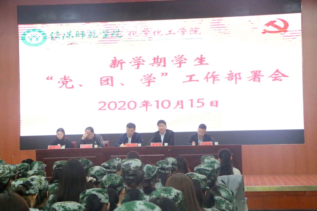 2020年10月15日,m88官网在逸夫楼报告厅召开新学期党、团、学工作部署会。m88官网党委书记郭鹏、副书记吴志伟、分团委、学工办全体成员出席会议,全体员工党员、团委员工会社团干部、全体新生一起参加了会议,会议由团委书记邓耀辉主持。