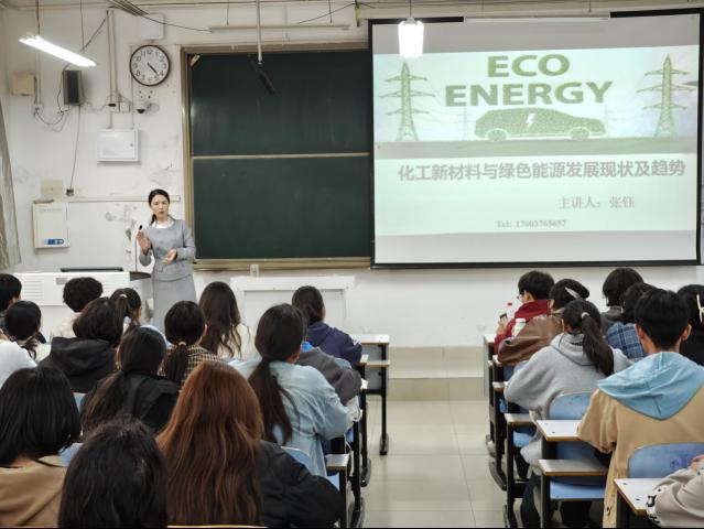 会上,张钰博士基于新能源,为同学们讲解了现下热门化学问题,指明了化学类专业就业前景与方向。她讲述道,如今新能源应用广泛,化工新材料作为新材料产业的重要组成部分,代表未来化学工业的发展方向,随着新兴产业的发展和性能优势的提升,市场需求将持续增长。此外,在讲述中,张钰博士特意强调,现如今绿色环保成为主流,随着全球环保意识的提高和可持续发展理念的普及,绿色、环保型化工新材料将成为市场主流并符合循环经济的发展要求。