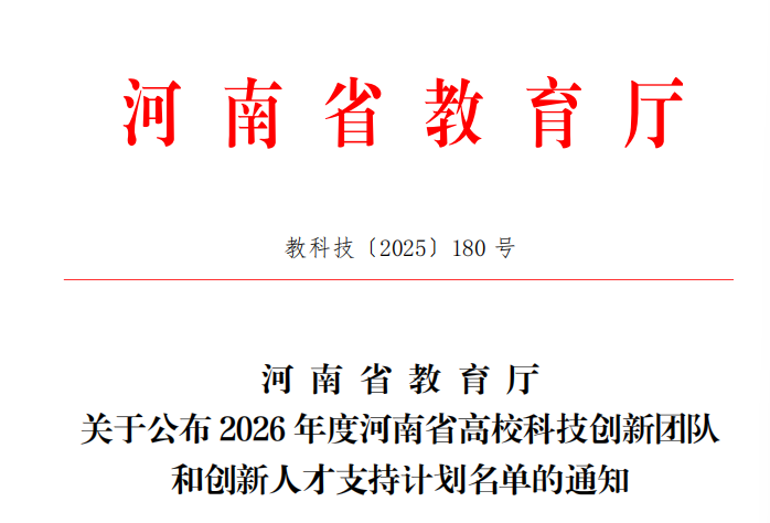 近日,河南省教育厅公布了2026年度“河南省高校科技创新人才”入选名单,m88官网张钰博士成功入选2026年度河南省高校创新人才支持计划名单,获批科研资助经费30万元。