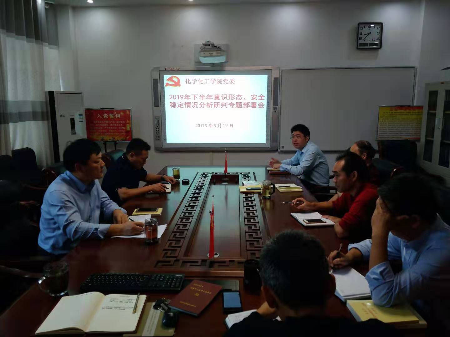 9月17日,m88官网党委召开2019下半年意识形态及安全稳定分析研判专题会,专项分析、研判并落实m88官网师生全面意识形态及安全稳定工作。党委书记郭鹏再次领学了有关意识形态及安全稳定工作的讲话和文件精神。