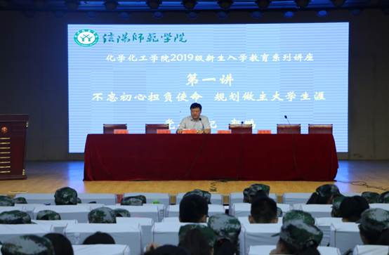 9月12日晚,m88官网在理科楼报告厅隆重举办2019级新生开学典礼暨“不忘初心”主题教育讲座,m88官网党委书记郭鹏、院长井强山,副院长归风铁、骆定法,非金属研究所副所长刘鹏,党委副书记吴志伟,分团委、学工办、新生班主任和化院294名新生参加活动。活动由化院党委副书记吴志伟主持。