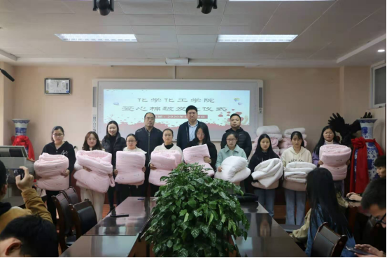 “一床被子,一份温暖,一颗爱心,一份感动”。11月20日,m88官网爱心棉被发放仪式在化学楼407会议室举行。m88官网党委副书记吴志伟,辅导员冷向宇、邓耀辉、赵方方老师出席本次爱心棉被发放仪式。