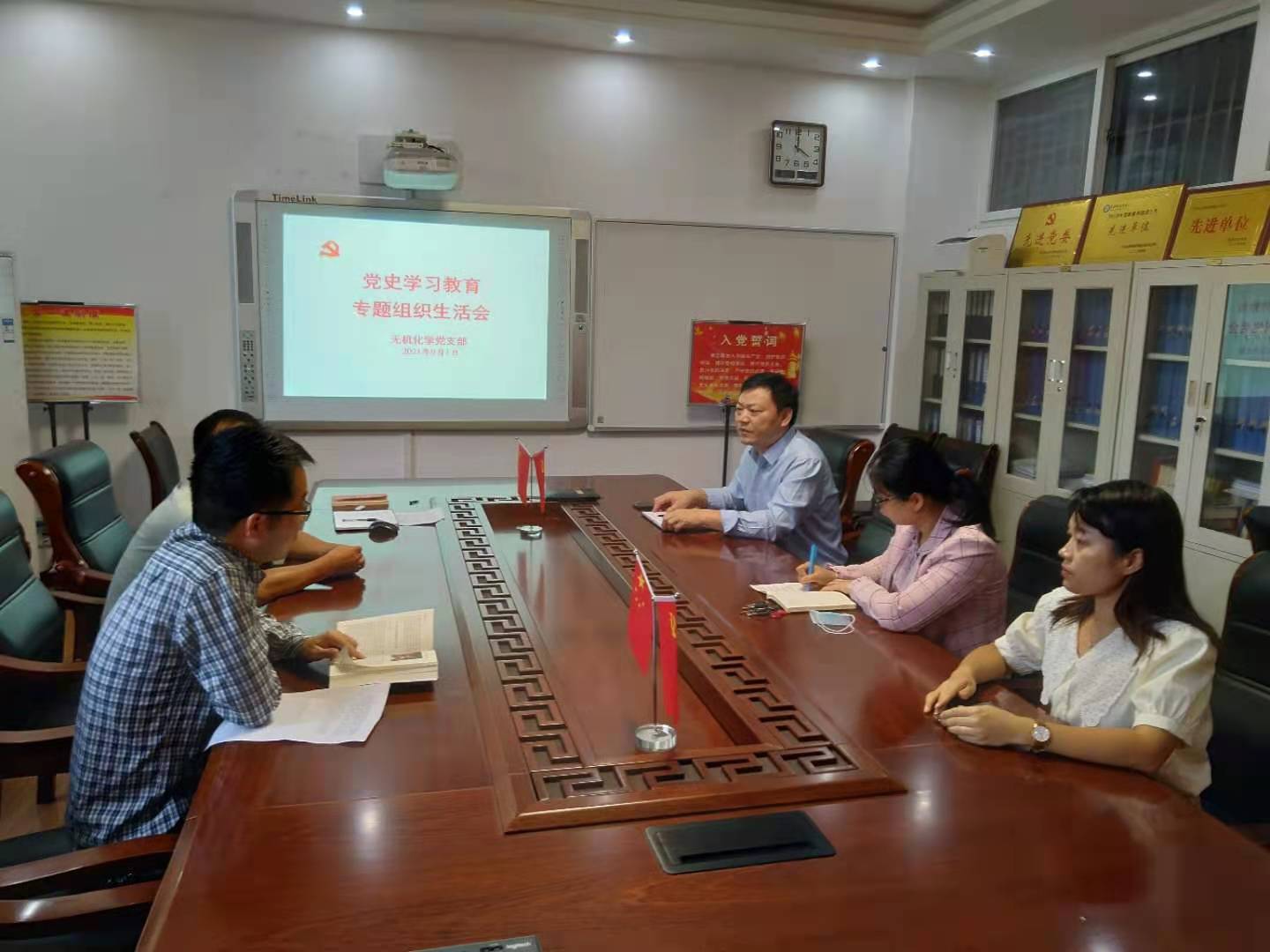 9月1日下午,化学化工学院无机化学党支部在化学楼313会议室召开党史学习教育专题组织生活会,会议由党支部书记邹国栋同志主持。m88官网无机化学党支部全体员工党员参加。m88官网党委书记郭鹏同志以普通党员身份参加所联系支部组织生活会。