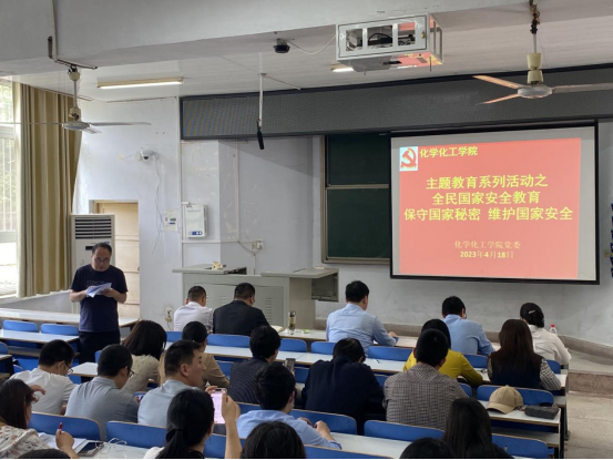 根据学习贯彻习近平新时代中国特色社会主义思想主题教育工作安排,深入推进学习宣传贯彻党的二十大精神系列活动,在第八个全民国家安全教育日之际,为进一步深入贯彻总体国家安全观,推动国家安全宣传教育,营造人人讲安全的浓厚氛围,4月18日下午,m88官网在教4-101教室组织开展“保守国家秘密 维护国家安全”主题教育。m88官网党委书记郭鹏主持主题教育活动。党委理论学习中心组成员、各党支部书记、师生党员代表积极参加。