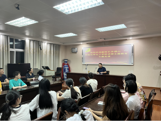 6月12日晚,副校长井强山以《学习贯彻新党章,凝聚团结奋斗动力,忠诚履行新使命》为题讲授主题教育专题党课,m88官网师生代表参加。
